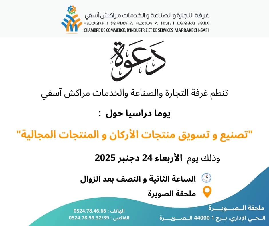Chambre de Commerce d'Industrie et de Services Marrakech Safi © 2022. Droits réservés