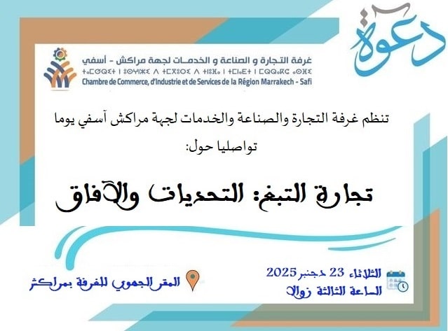 نظمت غرفة التجارة والصناعة والخدمات لجهة مراكش–آسفي، بشراكة مع المندوبية الجهوية للصناعة والتجارة بمراكش، لقاءً تواصليًا حول موضوع « مراقبة المنتوجات الصناعية عند الاستيراد »، وذلك يوم